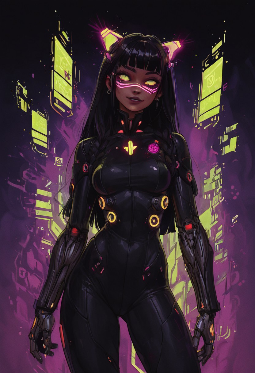 score_9, score_8_up, score_7_up, source_anime, absurd_res, g0thicPXL, glowing, neon,, BREAK 1girl, cyberpunk, asymmetrical cloak, glitch effect, pixel distortion, high-slit bodysuit, glowing runes, cybernetic arm, magic symbols, dark tech aesthetic, neon aura, transparent visor, arcane glyphs, shifting holographic patterns, mystical energy, floating symbols, cowboy shot, seductive smile, seductive eyes,lamiapgr, long hair, braided hair