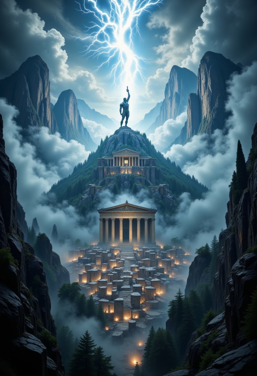 the most realistic, photorealistic photo ever taken [(god of THUNDER zeus:1.5), (((holding a thunderbolt LIGHTNING in his hand:1.8)))(an ancient greek mythological city, parthenon, mount olympus:1.5) in the clouds, a dream world shifting landscapes, and mythological creatures, Captured with a Hasselblad X2D 100C and an 80mm f/1.9 lens, hyper-realistic textures, elegant shadows, incredible realism, ultra-detailed textures, perfect lighting] ZEUS