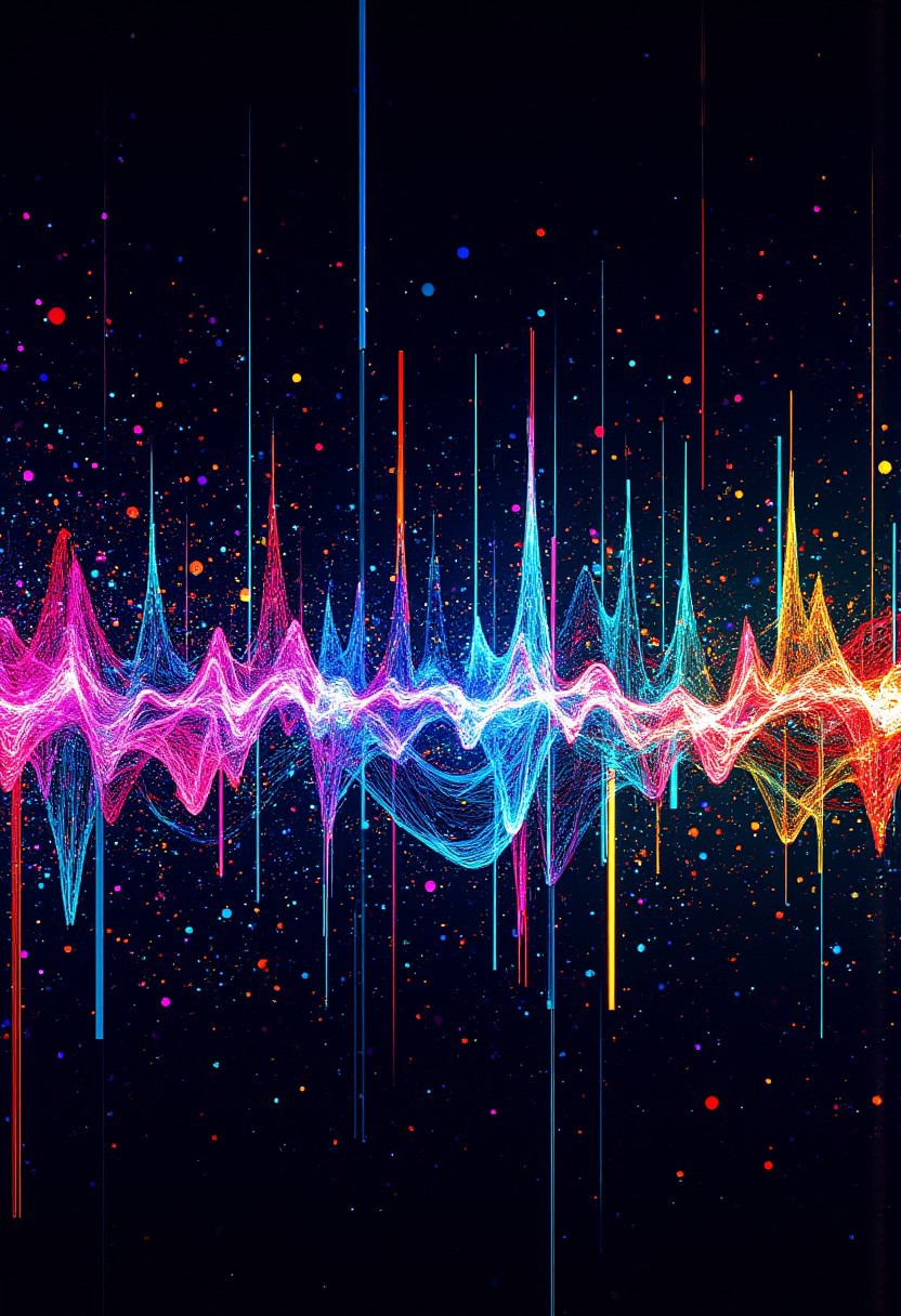 Abstract Sound Waves: A visual representation of a song, where sound waves are transformed into colorful, flowing ribbons of light. Each instrument is a different texture—smooth, jagged, or spiraling—creating a symphony of shapes. , aidmamj6.1, aidmaillustrious