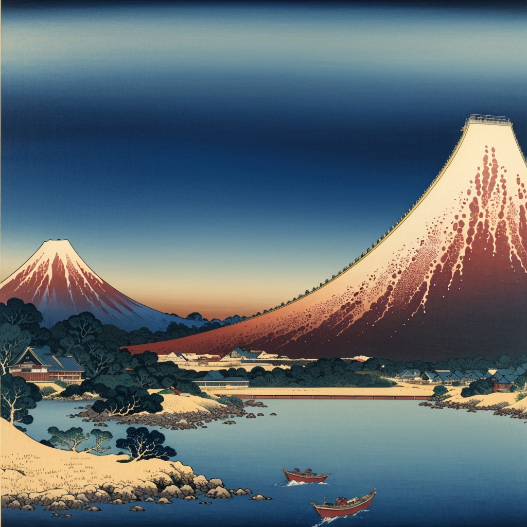 (masterpiece, top quality, best quality, official art, beautiful and aesthetic:1.2), a rainbow, 葛飾 北斎, katsushikahokusai, <lora:KatsushikaHokusai:0.5>
