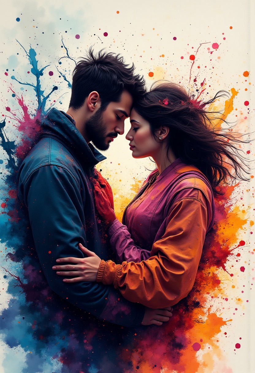 A lifetime of hugging a deep love, Committed to adventure in a foreign land. The hundred millions miles love has to burry, I'd rather have her than the blue sky. ink painting, ink art, splash, traditional media, colorful, scenery, very aesthetic, epic, majestic, fantasy art, dreamy, perspective, moody, magical, intricate details, highly detailed, ultra-detailed, absurdres, beautiful, painterly, detailed, textural, artistic, vivid, vibrant, aidmamj6.1,
