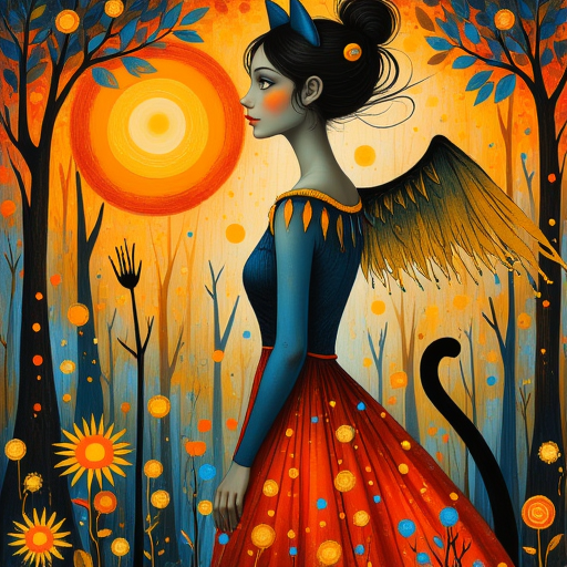 sun, rain, petals, dress, cat ears, jewelry, single hair bun, food, animal, eyeshadow, forest, hat, wings, tail