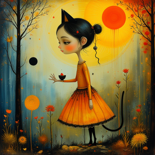 sun, rain, petals, dress, cat ears, jewelry, single hair bun, food, animal, eyeshadow, forest, hat, wings, tail