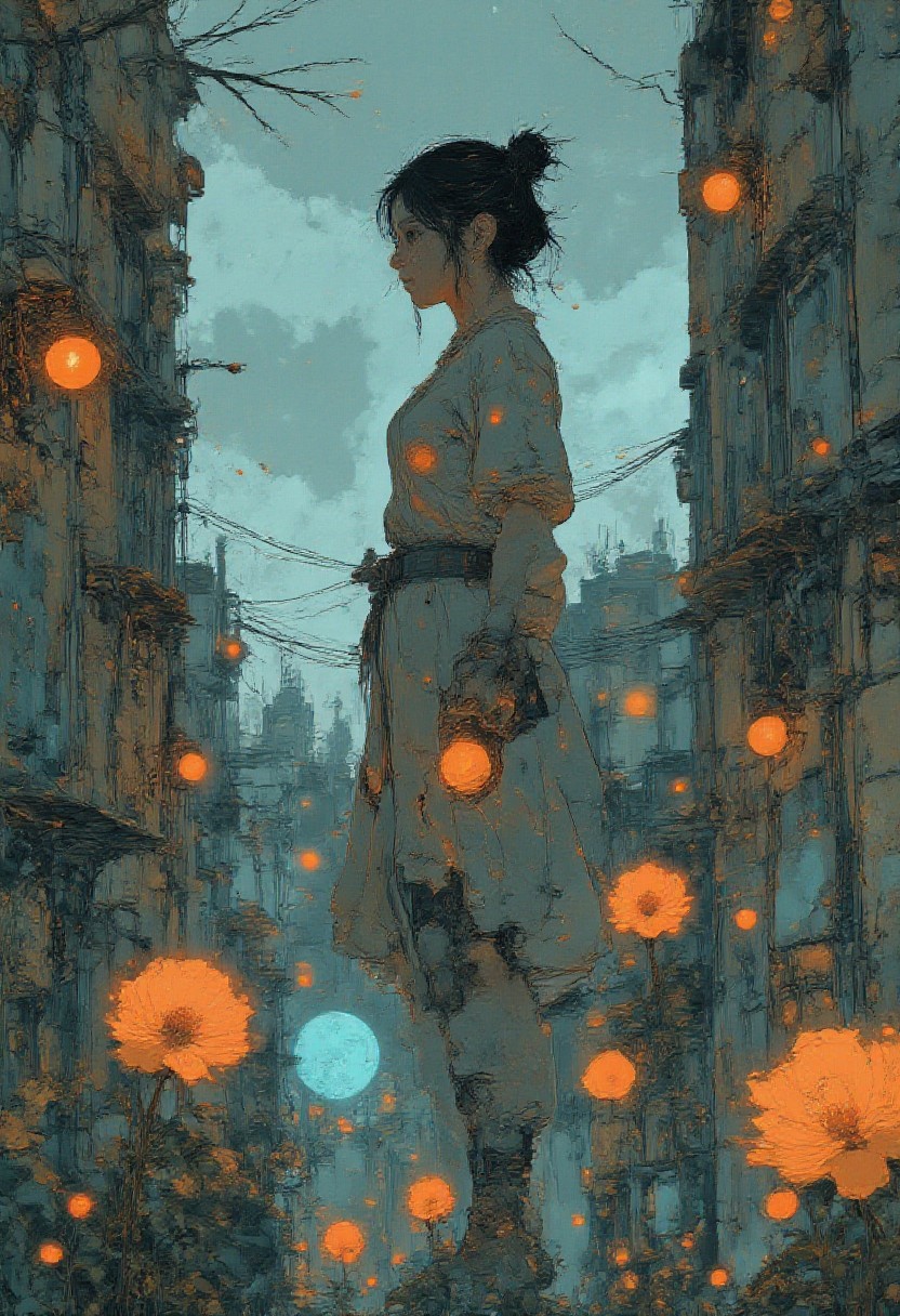 A Glamour woman sitting gracefully on blue stairs surrounded by scattered skulls, wearing a traditional Japanese kimono in black and white with intricate floral patterns. The woman has short black hair adorned with blue floral ornaments and a serene, slightly playful expression. Her pose is relaxed, with one hand resting on her cheek, and her gaze is slightly to the side, creating a mysterious and elegant atmosphere. The environment is surreal and symbolic, with the contrast of vibrant colors and stark black skulls enhancing the dramatic and otherworldly tone. The art style features detailed anime-style illustration with high contrast and sharp line work. <lora:Anime v1.3:1.2> <lora:Blue_Future:0.9> <lora:Ethereal_Brush_Anime_v1.0:0.6> <lora:It's a LoRA for portraits, BUT! actually specialized in backgrounds. v1.0:0.15>