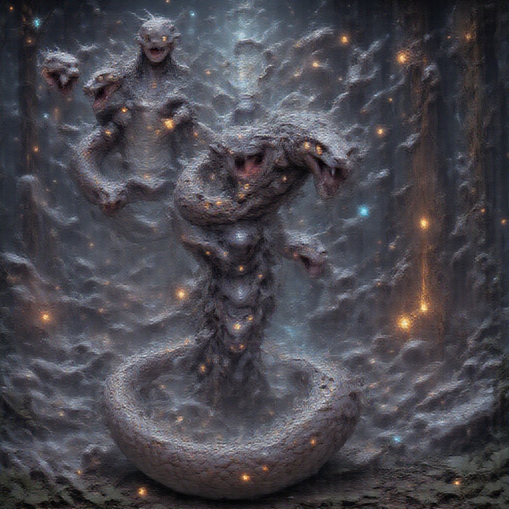 bio-mechanical, completely covered,a solo androgynous_character, android, led eyes, multicolored hair, gradient hair, multicolored scales, rainbow scales, anthropomorphic snake (naga), (on a tarot card-like design) Rating: general,(Styles: vaporwave, sythwave, Cityscape), 8k, colourful, Masterpiece, cyberpunk style