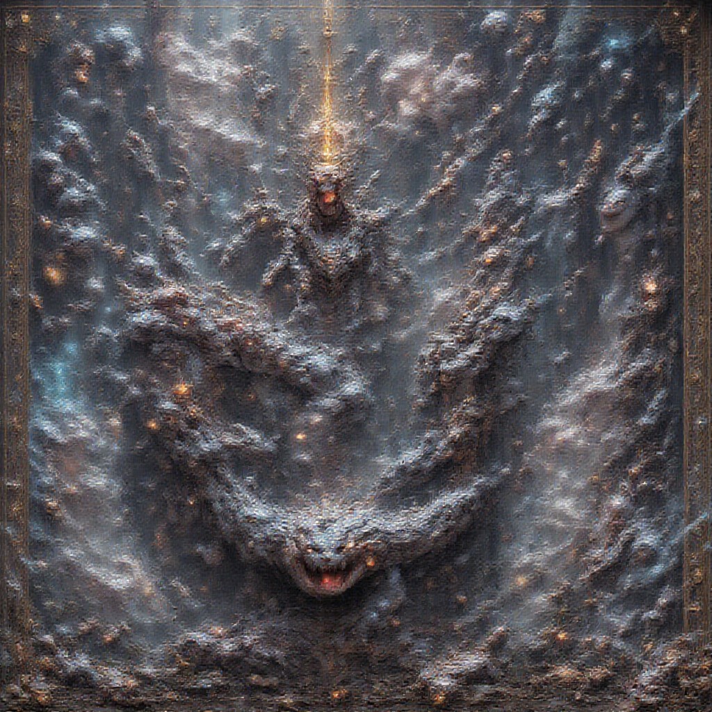 Rating: general,(Styles: vaporwave, sythwave, Cityscape), 8k, colourful, Masterpiece, cyberpunk style bio-mechanical, completely covered,a solo androgynous_character, android, led eyes, multicolored hair, gradient hair, multicolored scales, rainbow scales, anthropomorphic_snake_(naga), (on a tarot card-like design)