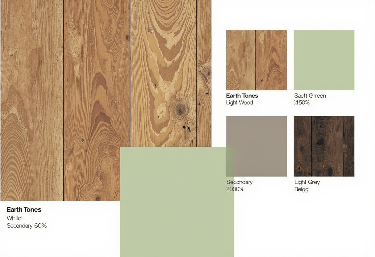 Japandi + Tropical (Alternate) 60% primary color: Earth Tones, Light Wood 30% secondary color: Dark Wood 10% accent color: Soft Green, Light Grey, Beige