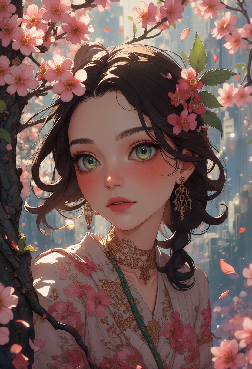 In the peach blossom city, petals whisper secrets. A solitary tree stands—a bridge to a hidden garden. The Peach Blossom Fairy tends her tree, sipping blossoms like wine. Sobriety finds her among fallen petals. “Better to age with wine and blossoms,” she muses. Poverty offers its own vintage: wine and blossoms, a bittersweet symphony. We linger, savoring life’s leisurely pace. Let the peach blossoms fall, let the wine flow. In this fleeting dance, we find our truth—a cup raised to the wind, a heart unburdened. And so we bloom, ephemeral and wild, in the peach blossom city.🍑🌸🌿 🌬️❤️🌼 art by Krenz Cushart, characters, digital, fantasy, illustration, manga-anime, portraits, whimsy, anime artwork, big-eyes, colorful, digital, fantasy, Japanese, manga-anime, aerial shot, aesthetic, dreamy, vibrant, vivid, textural, artistic, anime style, key-visual, studio anime, beautiful, painterly, detailed, textural, artistic, masterpiece, best quality, intricate details, highly detailed, ultra-detailed, absurdres, vivid, vibrant, volumetric lighting, detail eyes, magic eyes, de01, Anime art