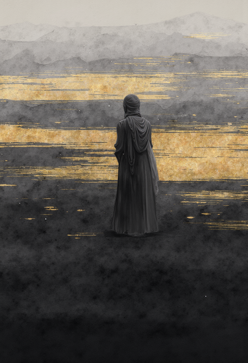 Step into an ethereal realm, where the serene embrace of The Moor unfolds within a minimalistic canvas. Shadows dance in harmony with the luminous touch of gold, as endless mist engulfs the horizon. An intricate play of light and darkness envelops the scene, enriching its tranquil ambiance. Delicate brushstrokes blend black-and-gold tones into abstract patterns, allowing the viewer to wander through this otherworldly landscape - an eternal testament to nature's mysterious beauty. ,<lora:flux/fav/t0m4zdrawing.safetensors:1.0:1.0>