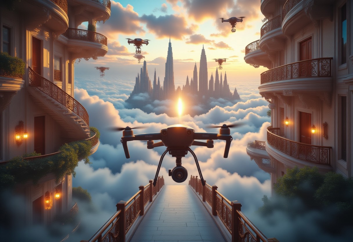 the most realistic, photorealistic photo ever taken [Fast FPV drone flythrough inside a luxurious mansion leading to a majestical city in the clouds, a GIRL FANTASY dream world with tall and modern skyscrapers, BRIGHT COLORS, floating islands in the sky, shifting landscapes, and ethereal creatures, Captured with a Hasselblad X2D 100C and an 80mm f/1.9 lens, hyper-realistic textures, elegant shadows, incredible realism, creamy bokeh, ultra-detailed textures, perfect lighting], aidmamj6.1, aidmaimageupgrader