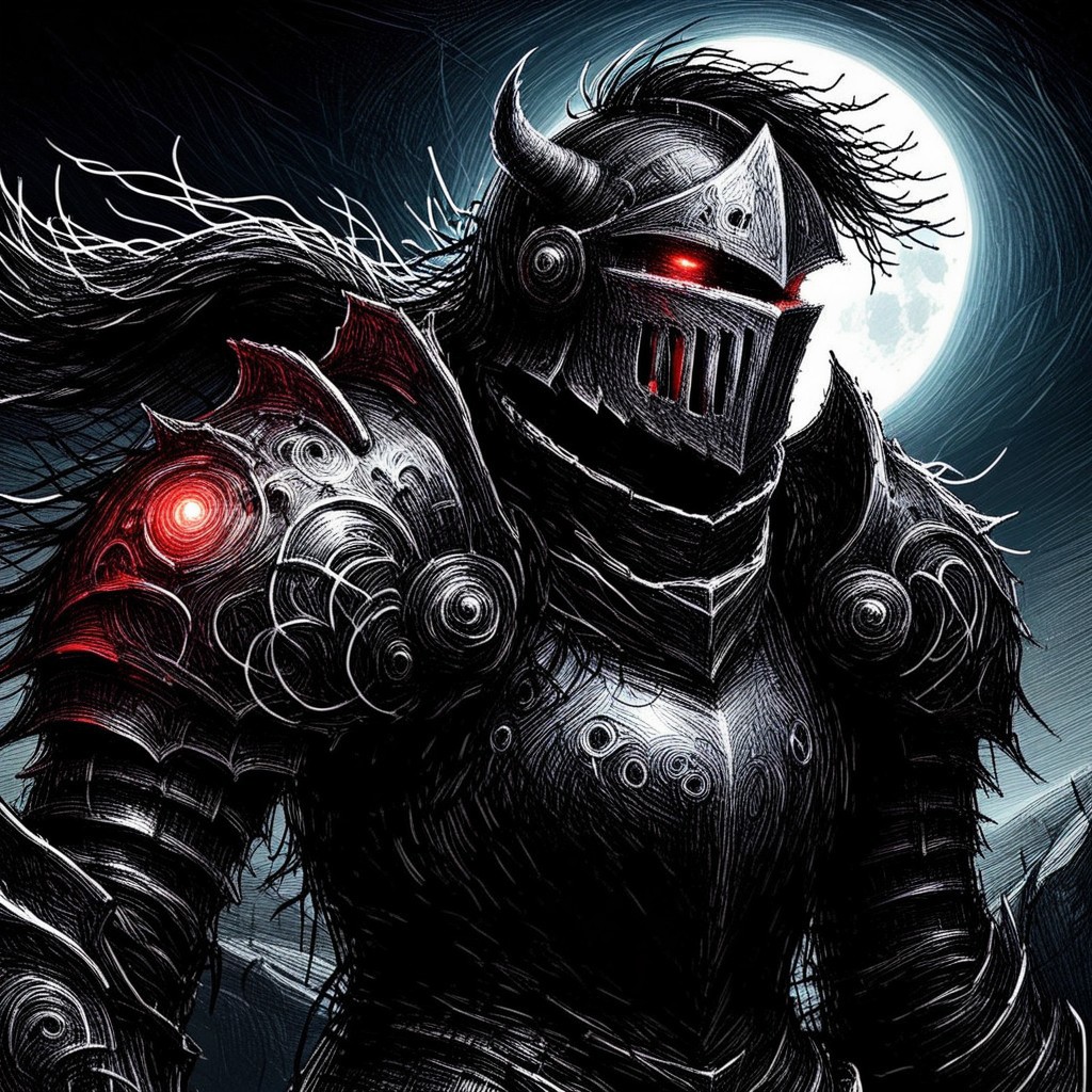 ScribbleRay, doodle, messy, dirty, hard lines, (scribble:1.5) , sketch of a armored knight riding a pig, glowing eyes, armor, night background, moon, eerie atmosphere, gothic, grim dark, fantasy art, medieval, detailed light silver and black armor, eerie glow, full armor , red glowing eyes, cape , rocky ground, fantasy creature, sketch theme, fantasy setting, high contrast, detailed textures, ominous, realistic lighting, haunting, eerie glow, medieval fantasy, gothic style, detailed rendering, fantasy character, cocomat ambiance, eerie environment, fantasy creature, armored knight, glowing eyes, riding a pig, knight over pig, pig, realistic castle, castle, castle background, smiling