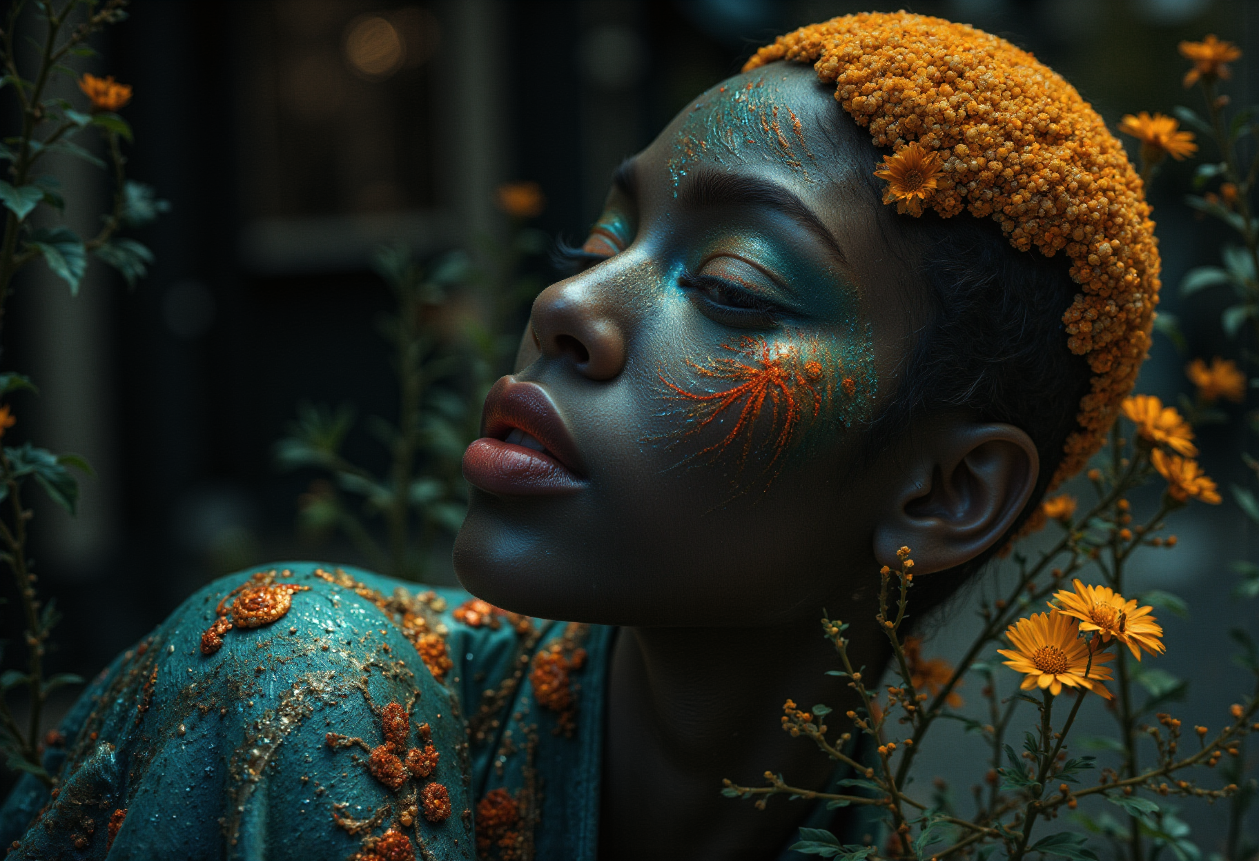 pleased Opal tones with urban Stone highlights for contrast. otherworldly look. Toyism 1992 â present Influence. otherworldly bioluminescent glow. With emotions of ð¨ð¿âð¦½ââ¡ï¸ E15.1 man in manual wheelchair facing right: dark skin tone// Mangaka style of Close-up on a glamorous scout girl bathed in shadows/ her Byzantine uniform with full of scout buttons Tempting. In a Fantasy setting/ she stands against a complex Teal and Lavender background/ blending into the Lime green city street and forest. Her deep red designs shimmering like a beacon of Hopeful abstract illusionism. Specular lighting accentuates every detail as if photographed with F/5 on Kodak Portra film.