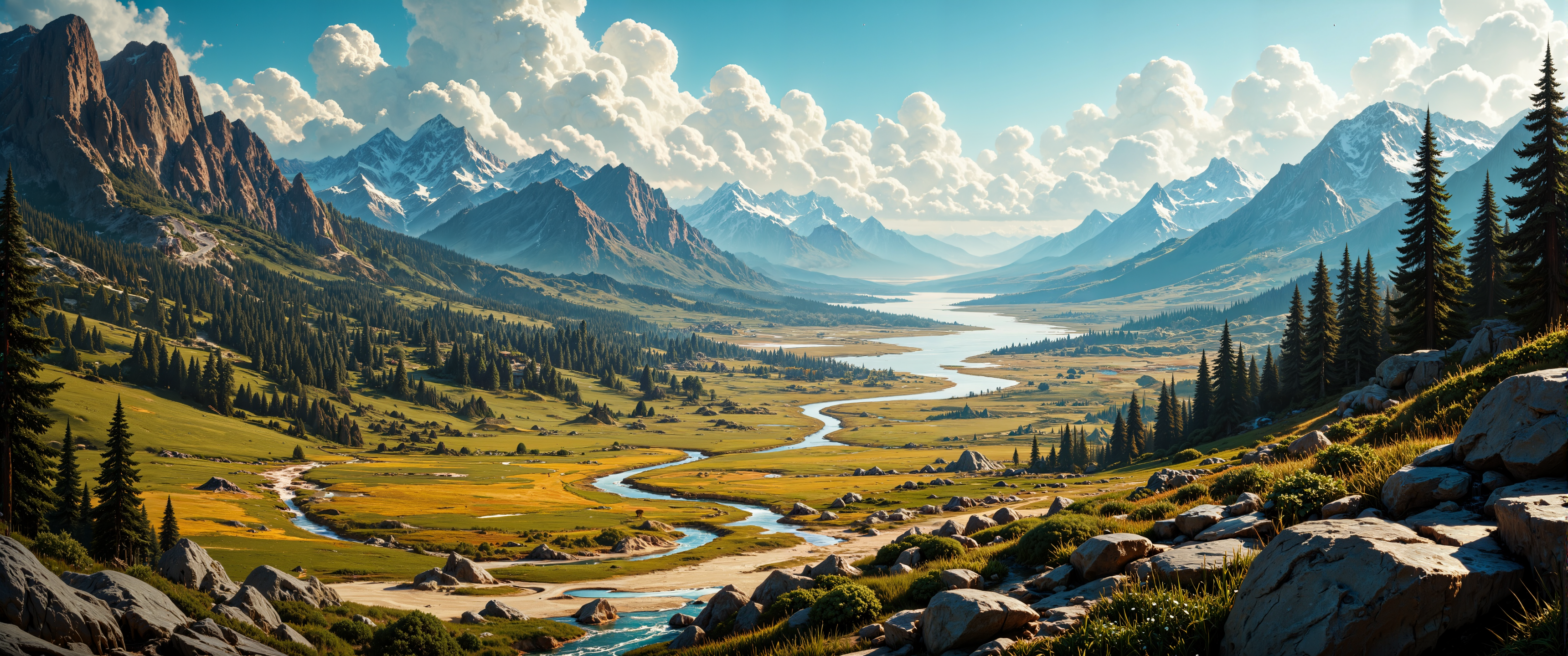 A breathtaking fusion of diverse landscapes: lush forest glades, shimmering coastal shores, expansive desert dunes, towering mountain ranges, and serene valley vistas. Intricate sweeping aerial views, intimate close-ups of dew-kissed petals, captivating eye-level studies of textured bark and winding riverbeds, dramatic low-angle captures of rugged cliffs, and dynamic tracking shots through vibrant meadows. Masterful 8k clarity, masterpiece quality, and hyper-detailed natural textures combine with luminous sunlight, diffused shadows, and realistic gradients to evoke a timeless, atmospheric spectacle. Vivid color palettes, fine details, and refined spatial composition imbue the scene with intricate natural patterns and evocative ambient elegance, celebrating Earthâs multifaceted biomes with unparalleled precision and surreal yet organic harmony. <lora:FluxMythG0thicL1nes:0.5> <lora:CPA:0.1> <lora:FluxMythAn1meL1nes:0.8> <lora:bm-goth_epoch_1:0.5> <lora:flux_dev:1>