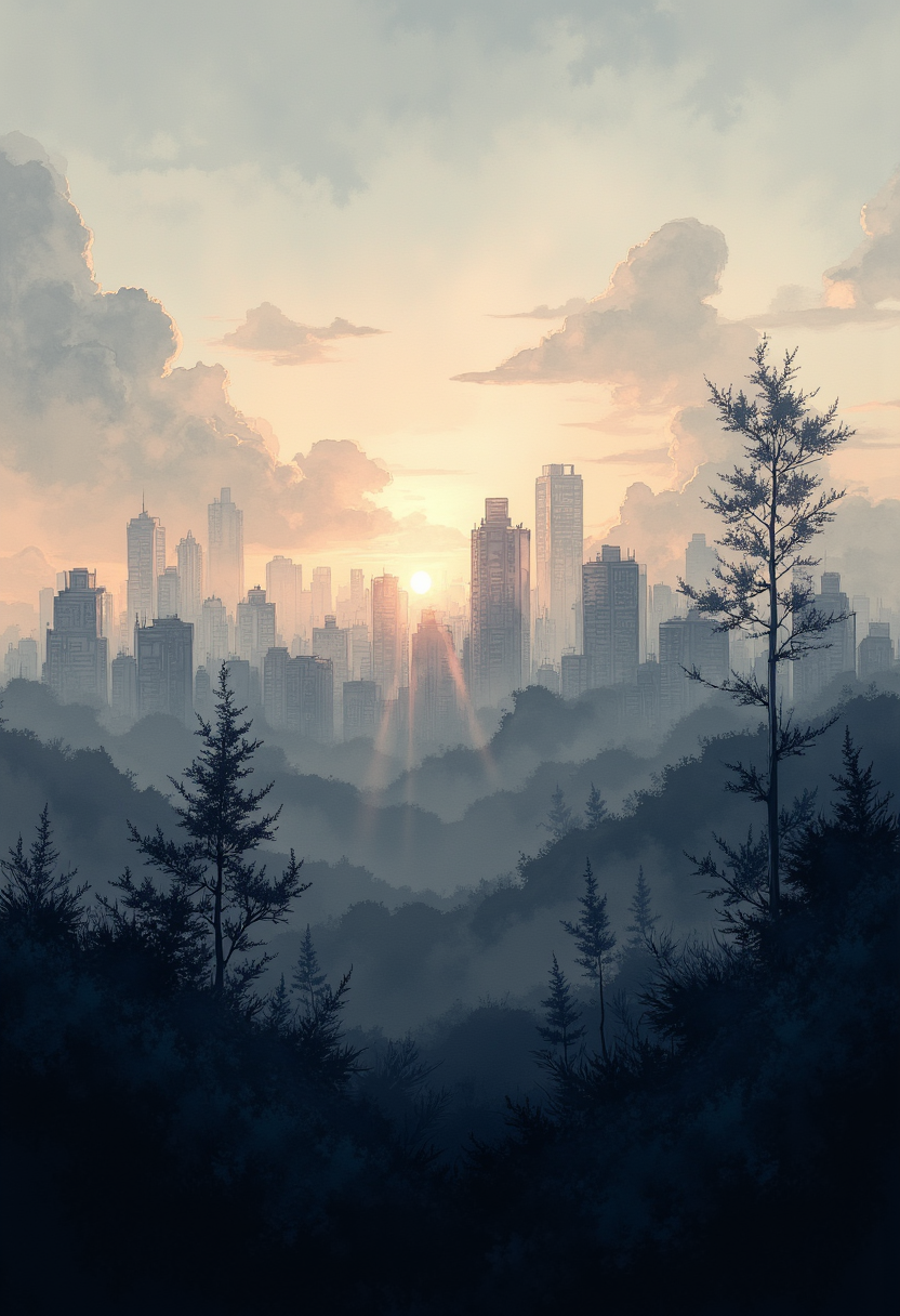 Embrace the soothing embrace of soft light as it illuminates a minimalist robot settlement amidst untamed greenery at dusk. Silhouetted against a flat canvas of tranquil sky, simplified robotic inhabitants dot the horizon with their linear shapes creating balance within the composition. Clear lines and gentle curves gracefully guide the eye across the scene while impressionistic brushstrokes subtly hint at the hustle and bustle within each dwelling. This harmonious fusion of minimalism and impressionism whispers a tale of reduced form and uniformity where technology harmoniously coexists with natures primordial beauty, beckoning viewers to witness an ethereal moment frozen in time. ,<lora:flux/fav/ZenInkWashSumi-eFlux.safetensors:1.0:1.0>