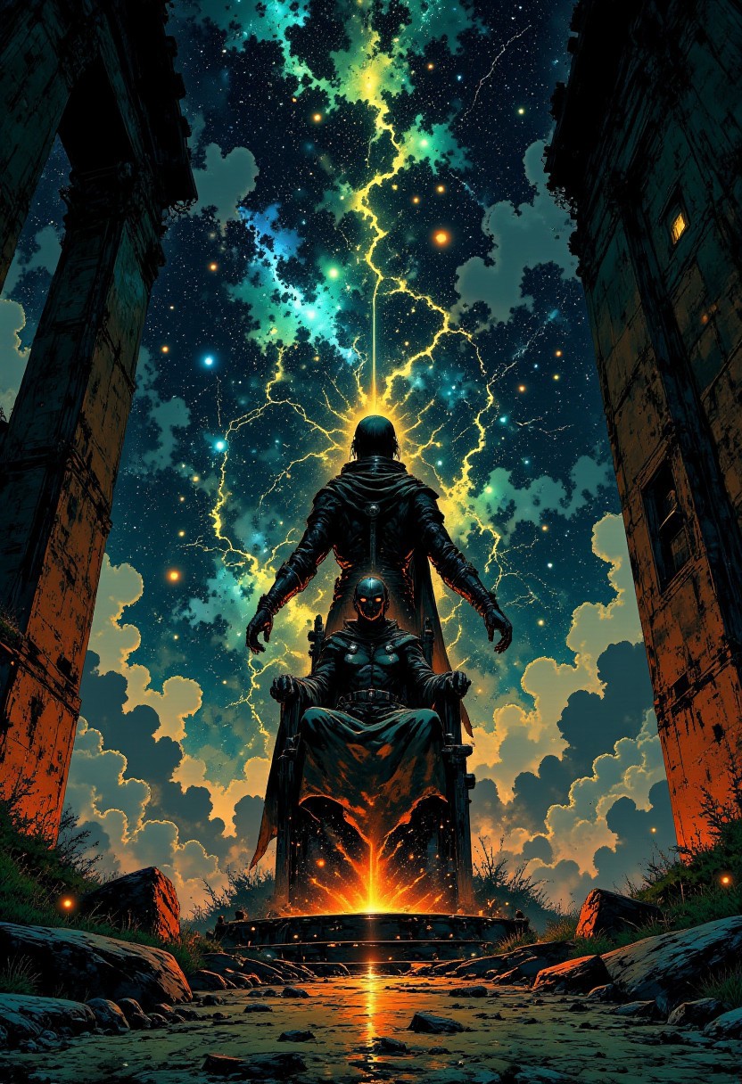 The Tithes of the Damned – Offerings to a Dying Cosmos "A ruined temple stands at the edge of existence, where worshippers once carved their own memories into the stone as offerings. The carvings remain, but the people are long gone—only their echoes remain, looping endlessly. The high priest’s throne is empty, but its shadow remains seated, watching, waiting. Above, the constellations twist into sigils that burn into the minds of those who look up, replacing thoughts with knowledge not meant for mortals."