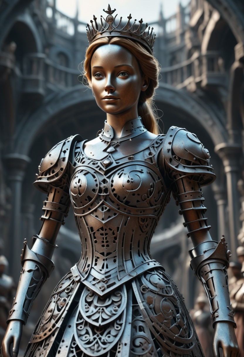 A princess made out of Iron World, photography, cinematic shot, 4k, high resolution, high detail,