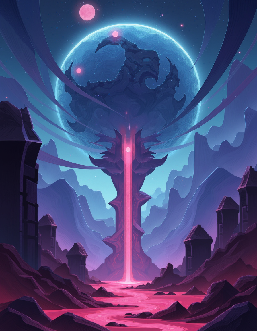 a cool image of an impossible landspace with some nice depth of field and dramatic colors <lora:afkArenaFlux:1> 2d, afkArenaStyle style