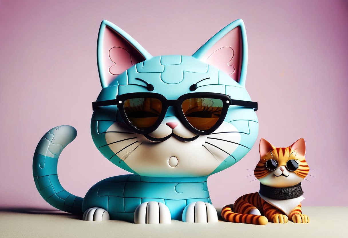 A Cute, (cat made out of puzzle_morph_rks), (cat wearing sunglasses), solo, winter, 4k, high detail, high quality, realistic, full body,