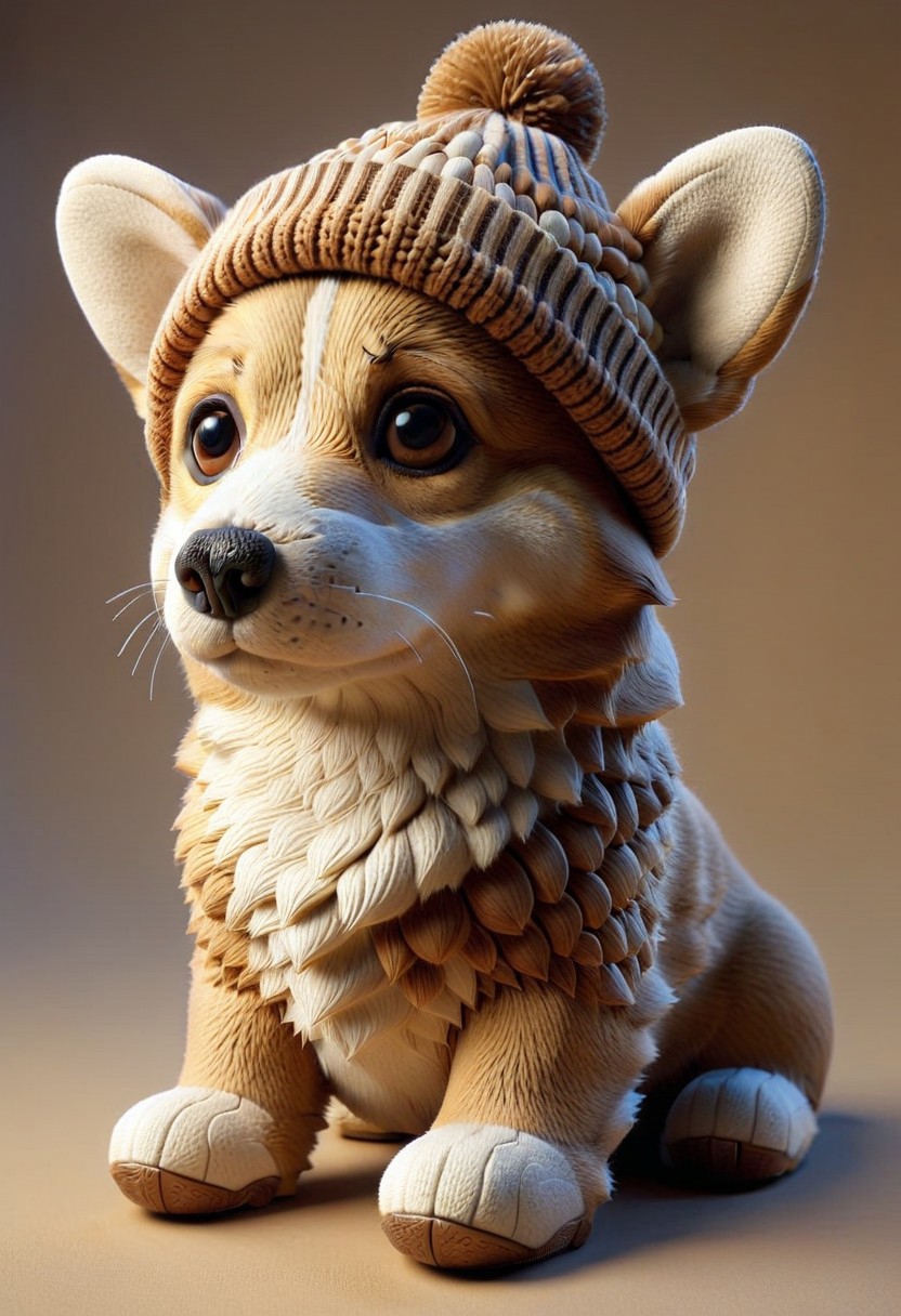 A Cute (corgi puppy made out of nutstylesnut), sitting, (wearing beanie hat), 4k, high detail, high quality, realistic, full body,