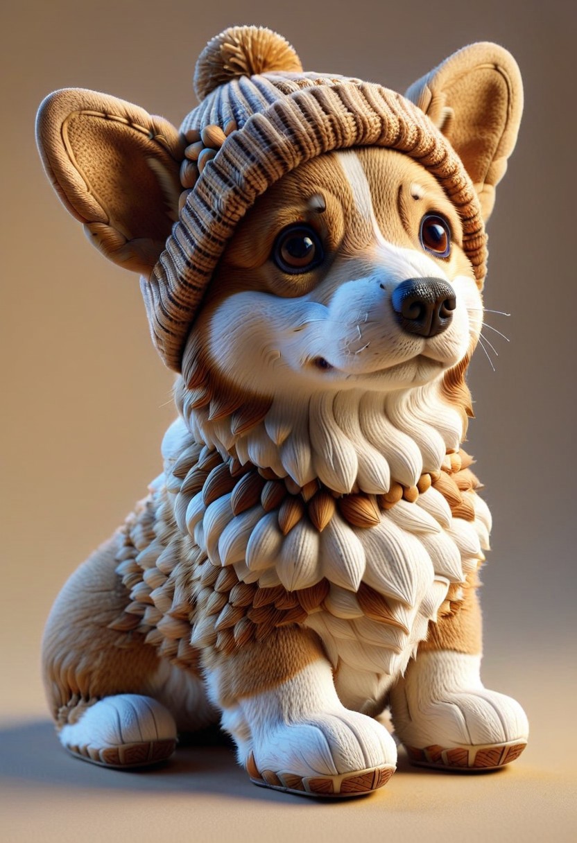 A Cute (corgi puppy made out of nutstylesnut), sitting, (wearing beanie hat), 4k, high detail, high quality, realistic, full body,