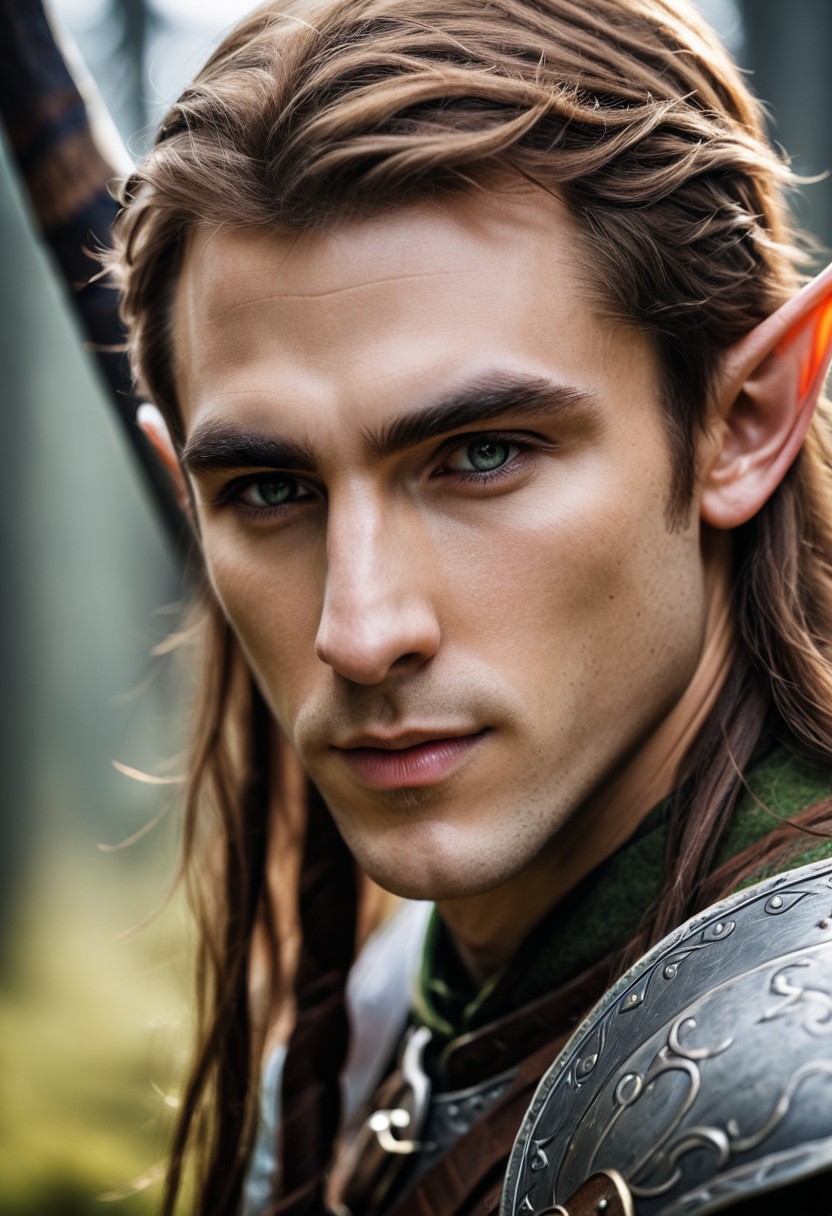 close-up portrait of a male elf, headshot, warrior, battle, axe, hyperdetailed photography, looking at viewer