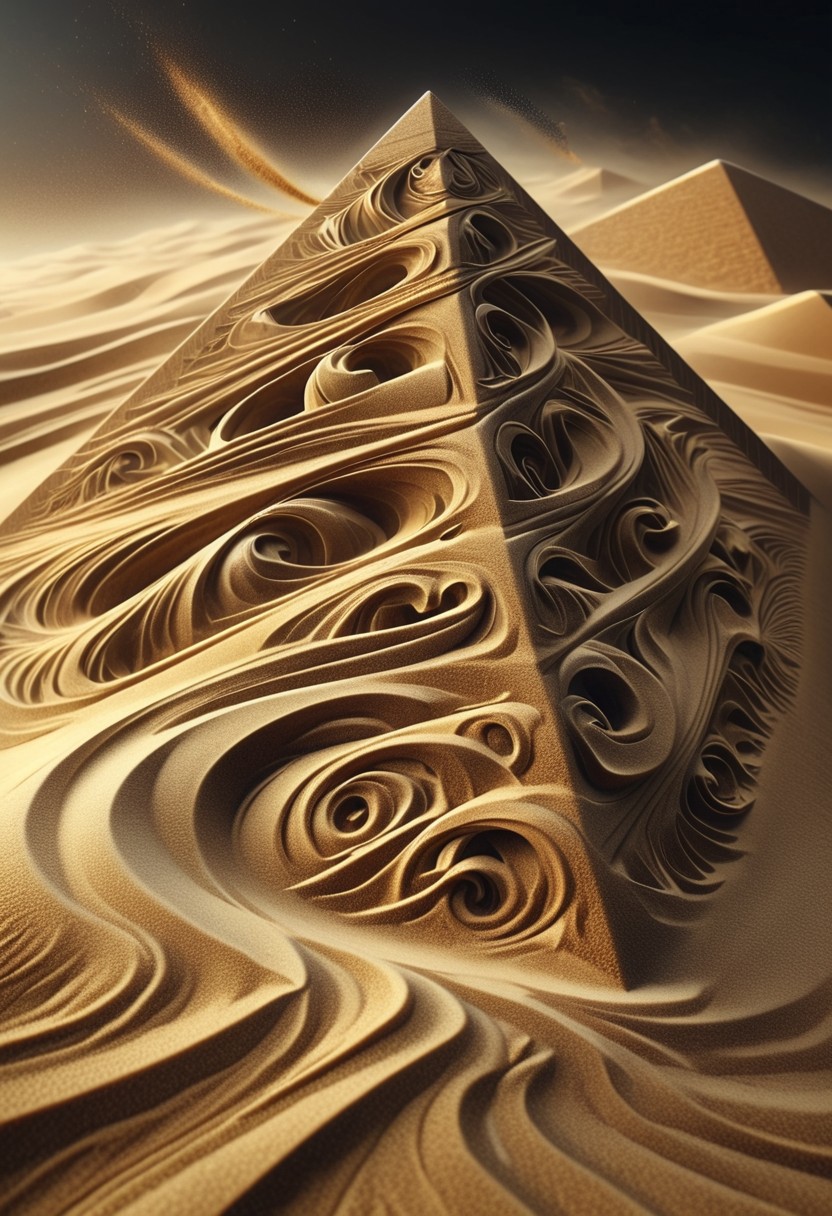 A pyramid made out of swirling sand, photography, cinematic shot, 4k, high resolution, high detail, sandswirl,