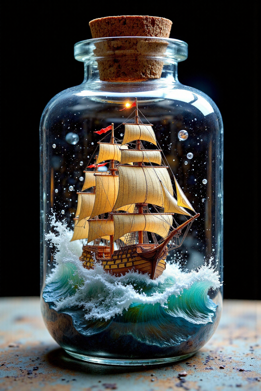 anm-frac photo of A ship in a bottle that moves with real waves. fractal patterns, colorful , highly detailed perfect composition Polished marble with delicate veining for an elegant, luxurious effect. Create a sense of mystery and intrigue to engage and captivate., detailed background 4LYS0N <lora:alyson-v1:1> <lora:anm-frac-v1-000048:0.8>
