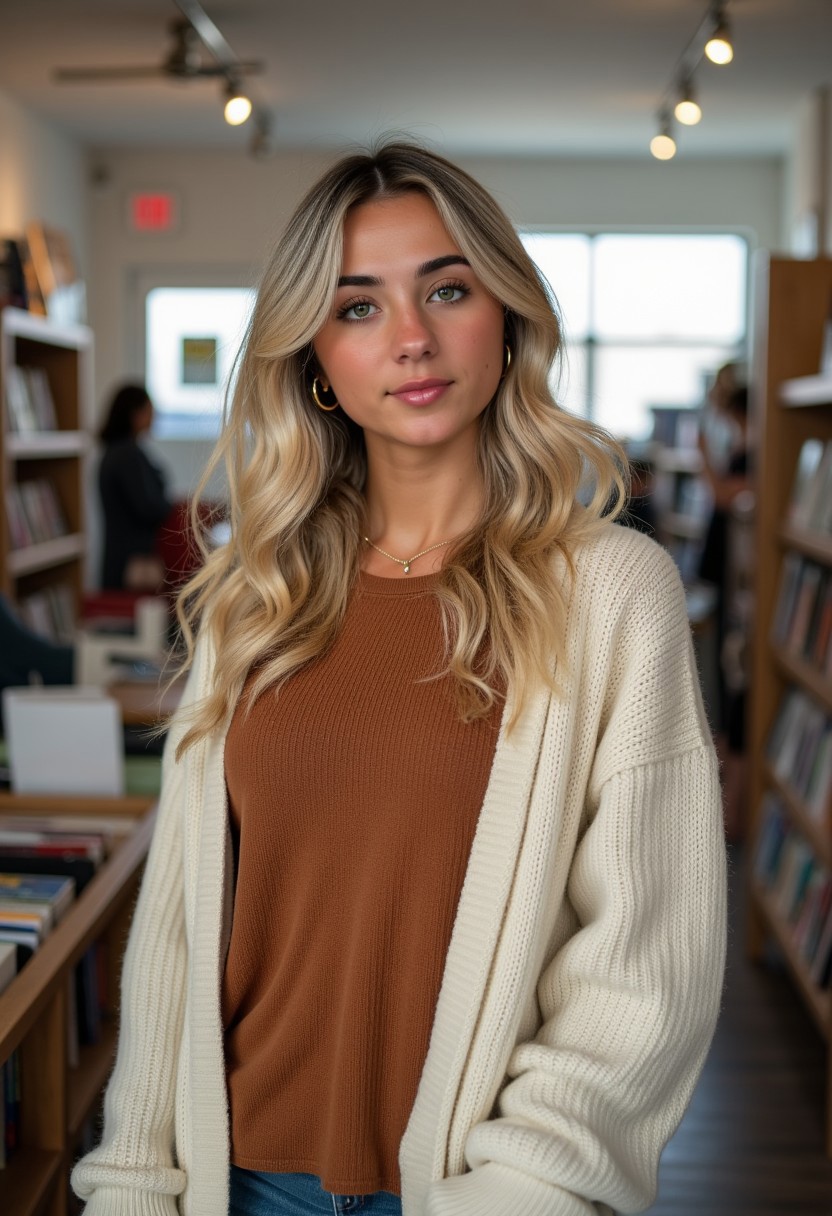 Browsing a bookstore wearing a cardigan, Thotty_Kamryn