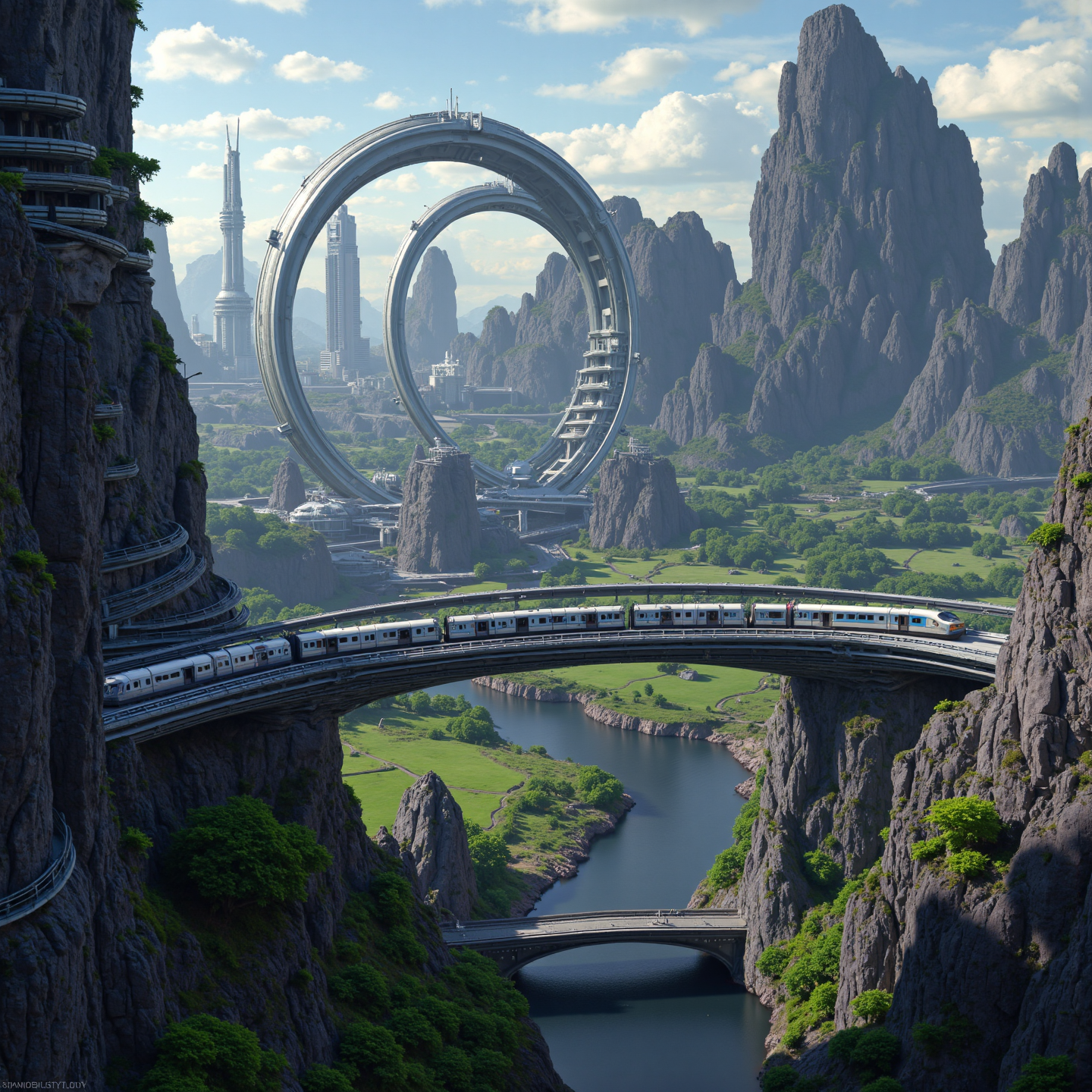anm-prspct, high anm-prspct angle view, photo showing high detail photo of a huge futuristic high-tech city on a foreign planet. in the center there is a gigantic octopuss from structure that streches far into the sky and has glowing lights on various levels. Also big gardens are edged into building. high speed trains on monorails with blue lights lead to the city and come from a tunel in a big mountain in the distance, in a tiny prison cell ultra detailed cinematic film still,