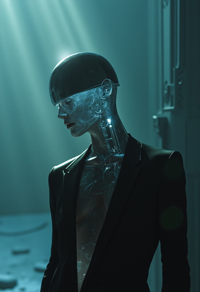 . I'm trying to forget how to breathe. To give you at least a minute The gas that they did not know how to appreciate But you're sleeping and you don't know... that there are kilometers of water above us That whales are beating their tails above us And there's not enough oxygen for two , I'm lying in the dark... , ,.. masterpiece, best quality, medium-format camera, high-contrast, dramatic lighting, striking composition, The background is minimalist, a gradient of shadowy blue tones, amplifying the ethereal and futuristic ambiance of the scene. The overall composition feels cinematic, blending high fashion with a science fiction aesthetic. . Exquisite cyberpunk. retroFuturism.. The bold colors and intricate patterns create a powerful, modern composition, inviting the viewer to dissect each element and trace the interplay of lines and shapes, while the hidden face conveys a sense of mystery and inner resilience. The painting's overall energy is palpable, demanding attention and encouraging exploration of its hidden stories. with rays of sunlight piercing through the misty atmosphere. masterpiece. An otherworldly atmosphere, Mysticism. mythp0rt, UNI_SCI_FI_CORE. (Depth of field),detail. mythp0rt, Stylish, charismatic. , Otherworldly atmosphere. aidmamj6.1 (Depth of field), low saturation,detail. mythp0rt Stylish, charismatic.c. (Depth of field),,detail. mythp0rt Stylish, charismatic. ,aidmamj6.1,ne0nfant4sy,. <lora:domiswaunfluxmini:1>