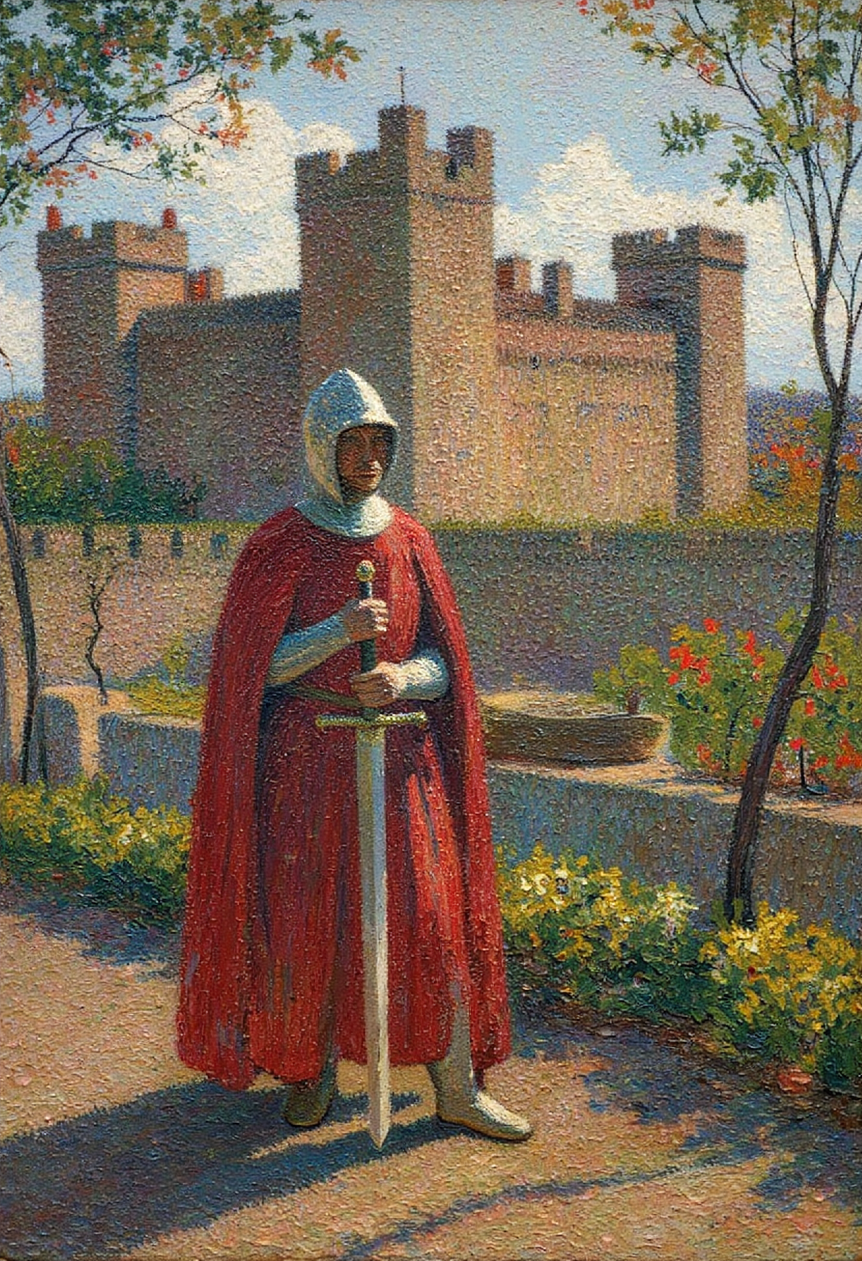 henrimartin1 painting of a Knights Templar standing in front of a castle holding a sword
