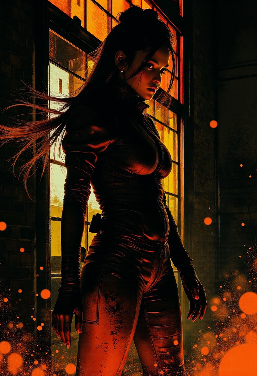 nistyle, mwv7_alpha_v01, ArsMJStyle, Expressive Watercolor Ink Wash, Inkplash art on rice paper, sepia, henna , Silhouette Art, magnificent, stunning japanese woman, long flowing hair, sidelocks, dark eyeshadow, sci-fi power armour, silhouetted, chiascuro, directional moonlight, dark background