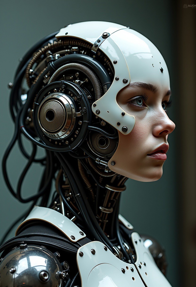 Extremely beautiful, intricate details, masterpiece, best quality Biomechanical cyberpunk, cybernetics, human-machine fusion, dystopian, organic meets artificial, dark, Partially constructed cyborg, glass body, pipes, wires, circuits, mechanical parts,